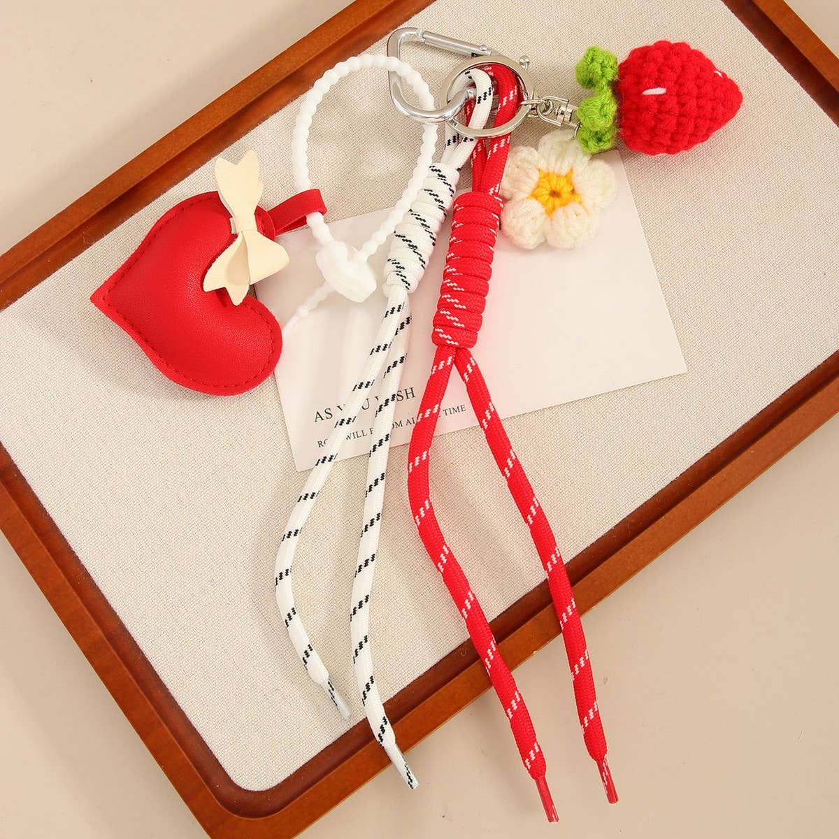 Strawberry Bow Keychain with Heart & Floral Charm_CWMM7623