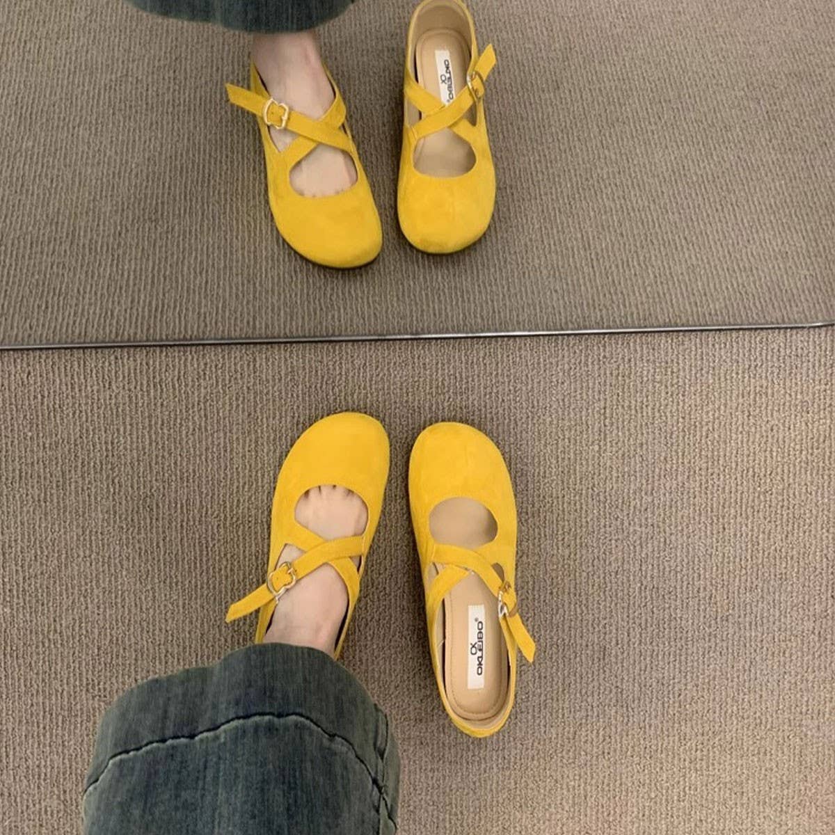 Suede Cross Strap Wedge Mary Jane Flats_CWSHF0129