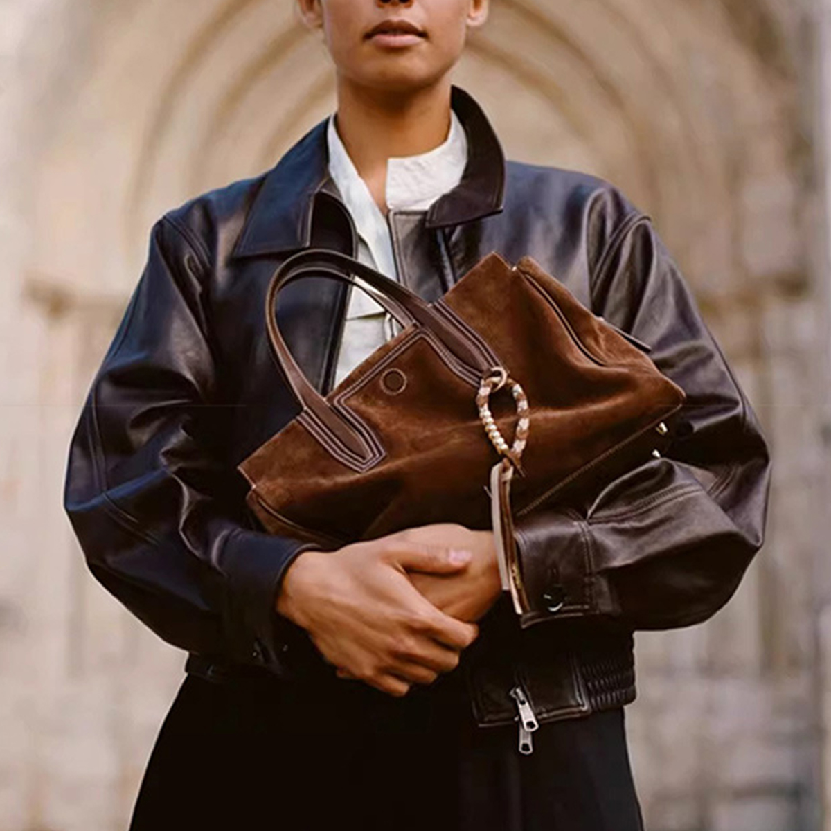 Suede Travel Bag ??Vintage Boston Shoulder Purse_CWAB5330