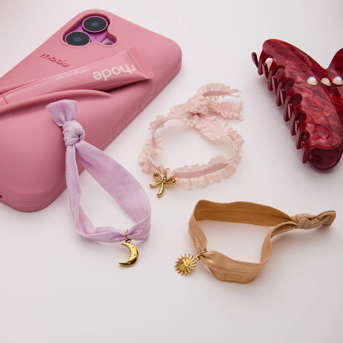 Sweet 18K Gold Pink Lace Bow Pendant Bracelet