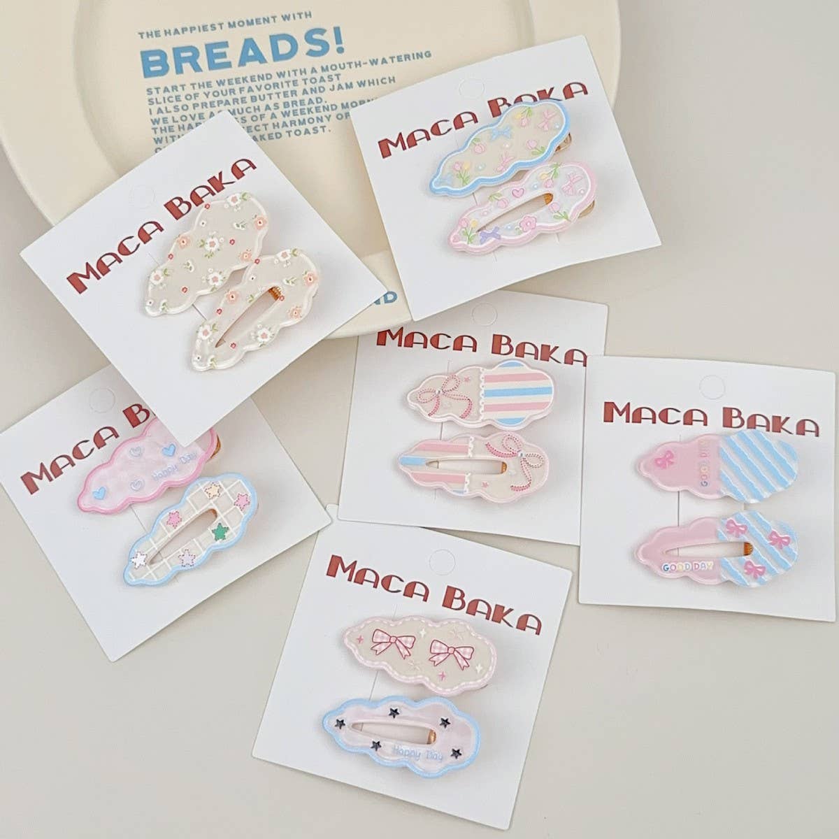 SWEET GIRL FLORAL BOW 2-PACK CLOUD HAIR CLIPS\nSIZE: OS(5)\n100% PLASTIC\nMADE IN CHINA\n\nHAIRPINS, BULK HAIRPINS, LILLA HAIRPINS, HAIRPINS WITH BOWS, HAIRPINS WITH BEADS, HAIRPINS FOR WOMEN, FACE WASH HAIRPINS, HAIRPINS FOR GIRLS, HAIRPINS FOR WOMEN WITH BEADS, HAIRPINS FOR KIDS, CLAW HAIRPINS, HAIRPINS FOR WOMEN, STORAGE BOXES, POPULAR, NEW PRODUCTS, WINTER, AUTUMN, SPRING, BEST-SELLING, WHOLESALE WITHOUT TAGS, OUTDOOR SPORTS, WARM, NOVELTY, BULK, CLEARANCE, 2024 NEW, BRAND NEW, BEST PRICE, FASHION, FLASH SALE, HIGH QUALITY, LOW PRICE, NEW TREND, SPECIAL PRICE, DIRECT SALE, BEST-SELLING, CUTE, PEARL, THICK, HEADWEAR