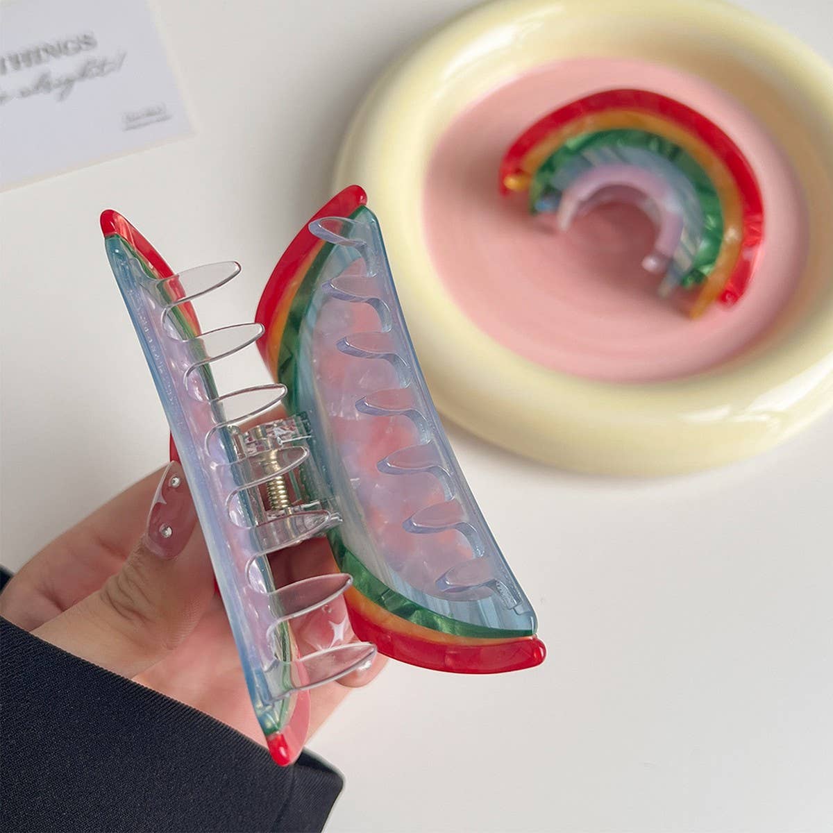 Sweet Rainbow Acetate Half-Moon Claw Clip ? Medium