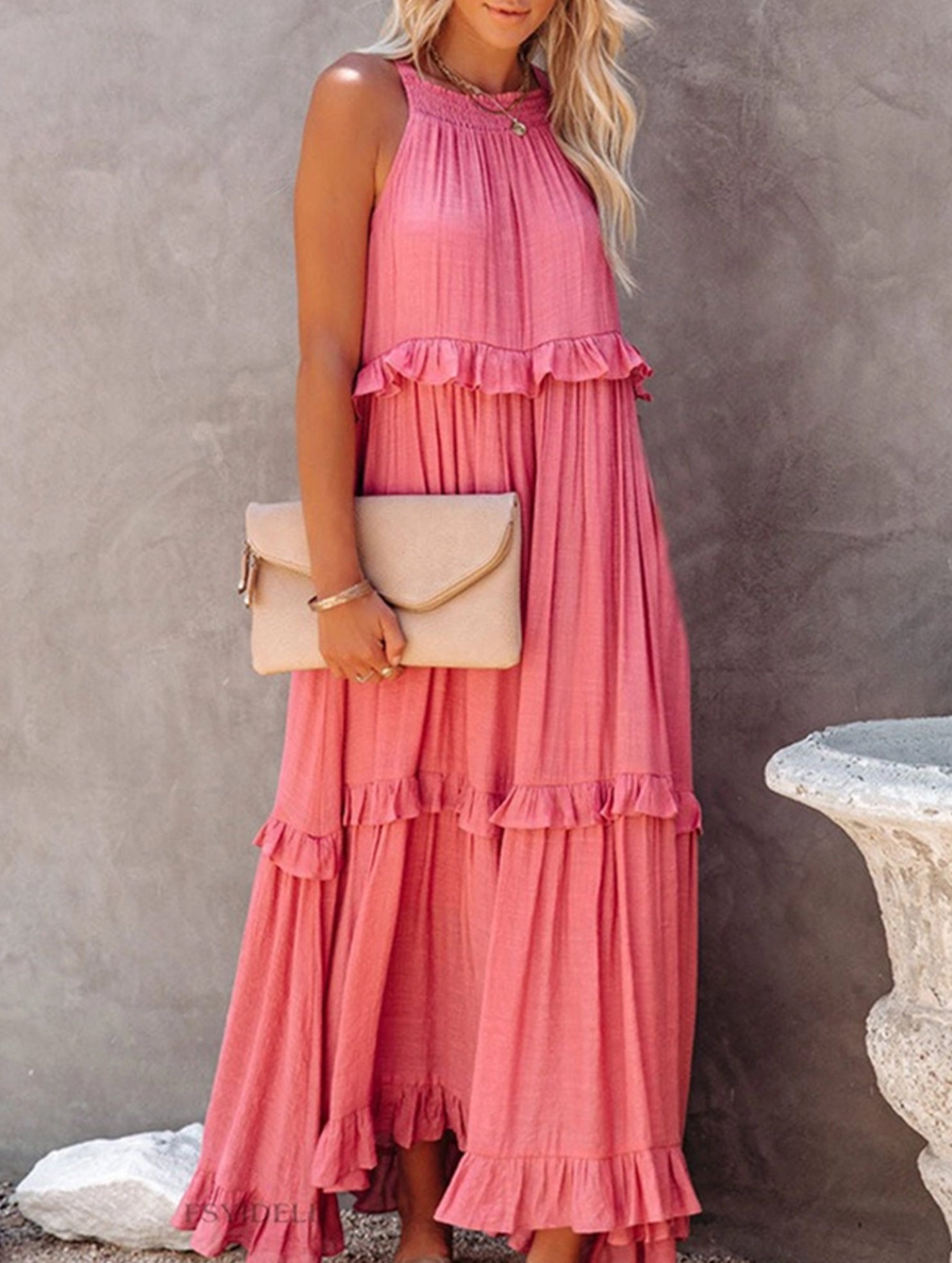 Elegant Temperament Long Floor-Length Cake Skirt Dress ??Tiered Maxi Gown