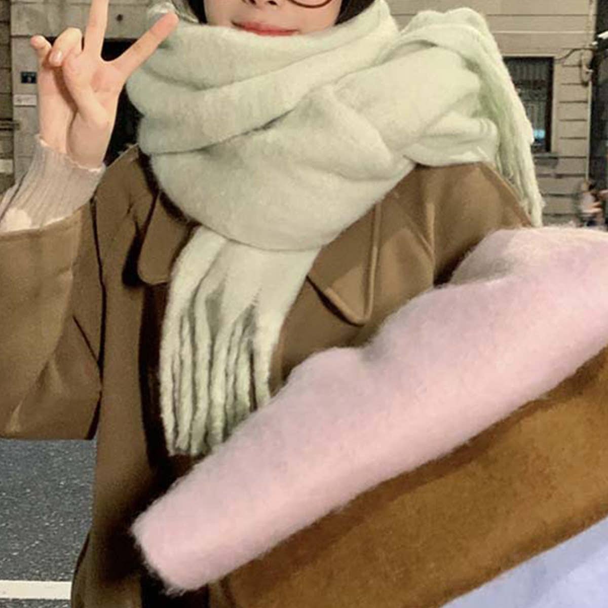 Thick Mohair Scarf - Winter Tassel Wrap for Women