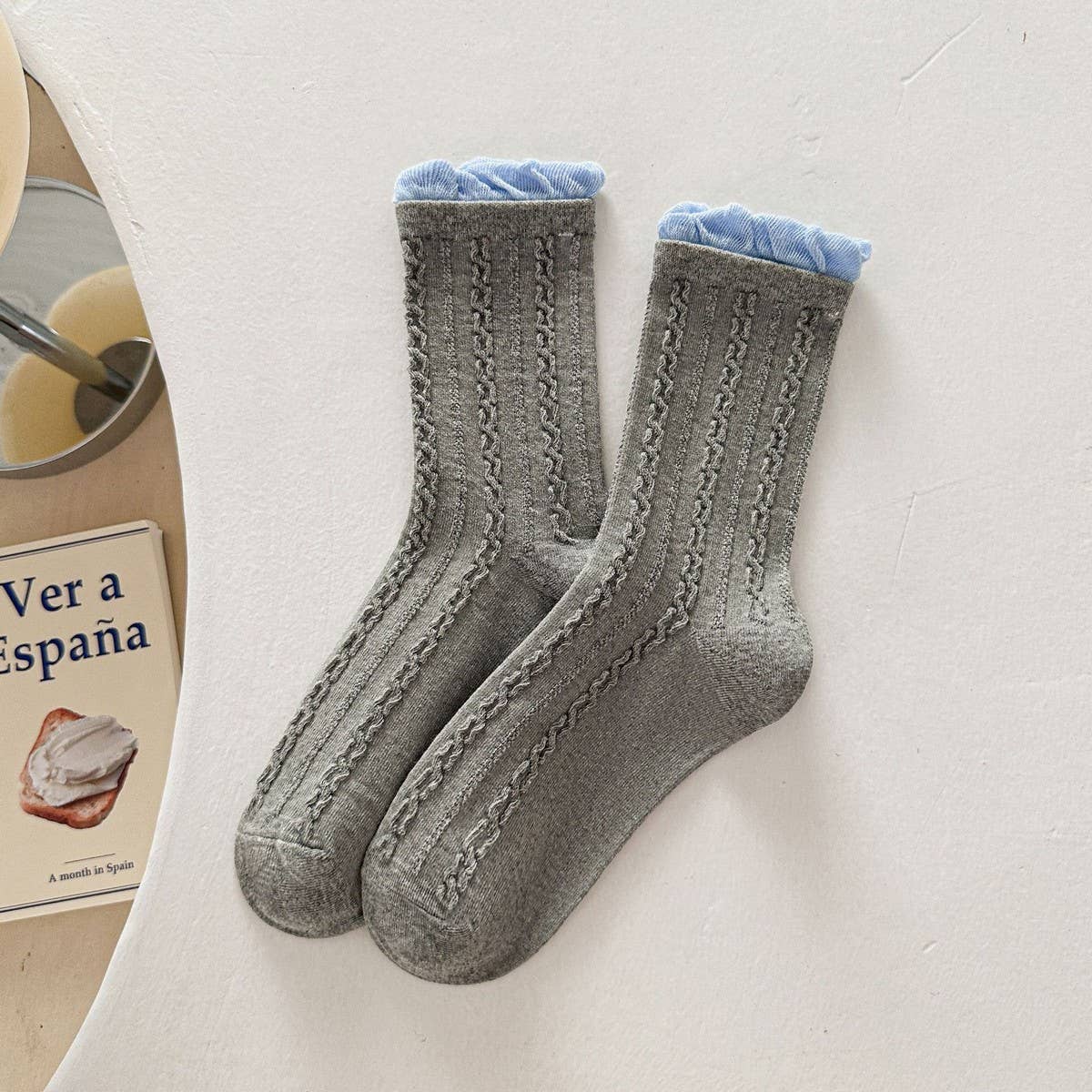 *Packaging Form: Opp\n*Applicable Gender: Female\n*Main Fabric Composition: Cotton\n*Tube Height: Medium Tube\n*Needle Count: 200n\n*Applicable Season: Winter, Spring, Autumn\n*Main Fabric Composition Content: 70% (Inclusive) -80% (Exclusive)\n*Weaving Method: Double Needle Socks\n*Color: Black, Pure White, Pure Milk White, Milk White Coffee Socks, Light Gray, Dark Gray, Khaki, Coffee\n*Pattern: Twist Lace Ruffle\n\nTypes Of Products That Will Be On The Shelves During This Period:\nSocks For Women,Socks Novelty,Socks Mith,Socks For Men,Socks For Kids,Socks Funny,Socks Cozy,Socks In A Box,Socks For Women Bamboo,Socks For Women Cozy,Socks For Women Ruffle Cozy Socks For Women,Cashmere Socks For Women,Fuzzy Socks For Women,Boot Socks For Women,Winter Socks For Women,Knee High Socks For Women,Crew Socks,White Crew Socks,Mens Crew Socks,Embroidered Crew Socks,Custom Crew Socks,Organic Cotton Crew Socks,Cotton Crew Socks,Blank Crew Socks,Boys Crew Socks,Retro Crew Socks.