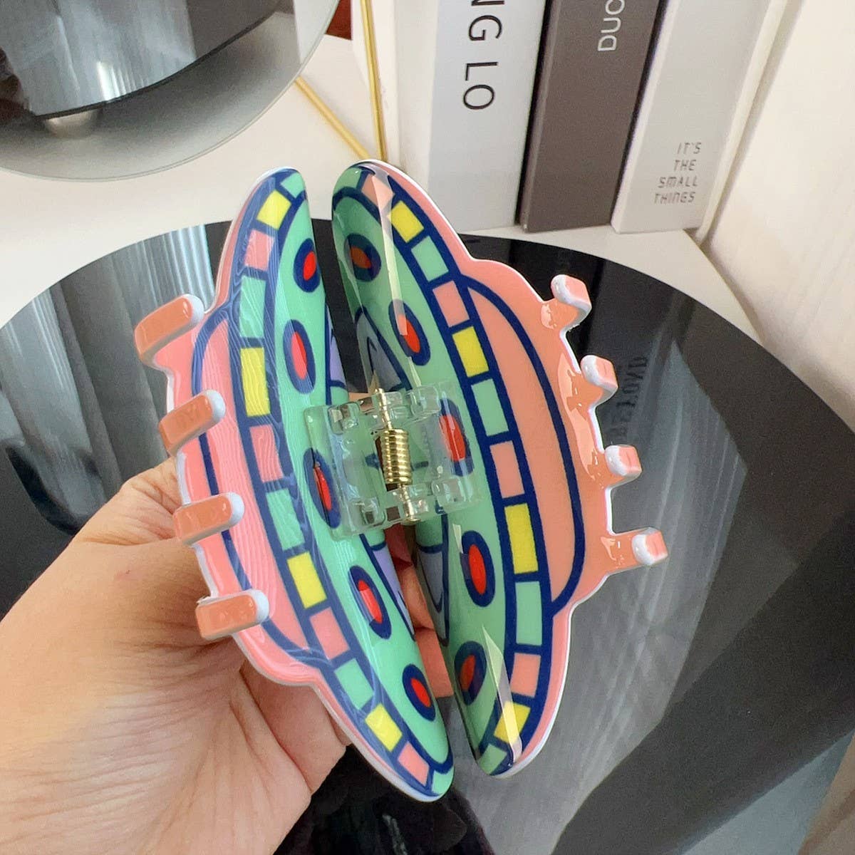 ? Size: Approx. 9.7cm / 3.82in\n? Material: Acrylic\n? Design Element: Spaceship / UFO ??\n? Style: Playful, sci-fi, and perfect for adding a space-age twist to everyday looks or party outfits\n\n#UFOhairclip #spaceshiphairclaw #acrylichairaccessory #scifihairclip #spacefashion #funhairclip #futuristichairclaw #97cmhairclip #trendystyleaccessory\nTypes of products that will be on the shelves during this period:\nHair claw clip set, large hair claw clip, flower hair claw, boho claw clip, pearl hair claw, modern hair claw, rhinestone claw clip, colorful hair claw, hair clips claw, hair clips for women, wholesale hair clips, bulk hair clips, hair clip display, clips for hats, clips for kids, mini hair clips, trendy hair clips, fashion hair claws, strong hold hair clip, acrylic claw clip.