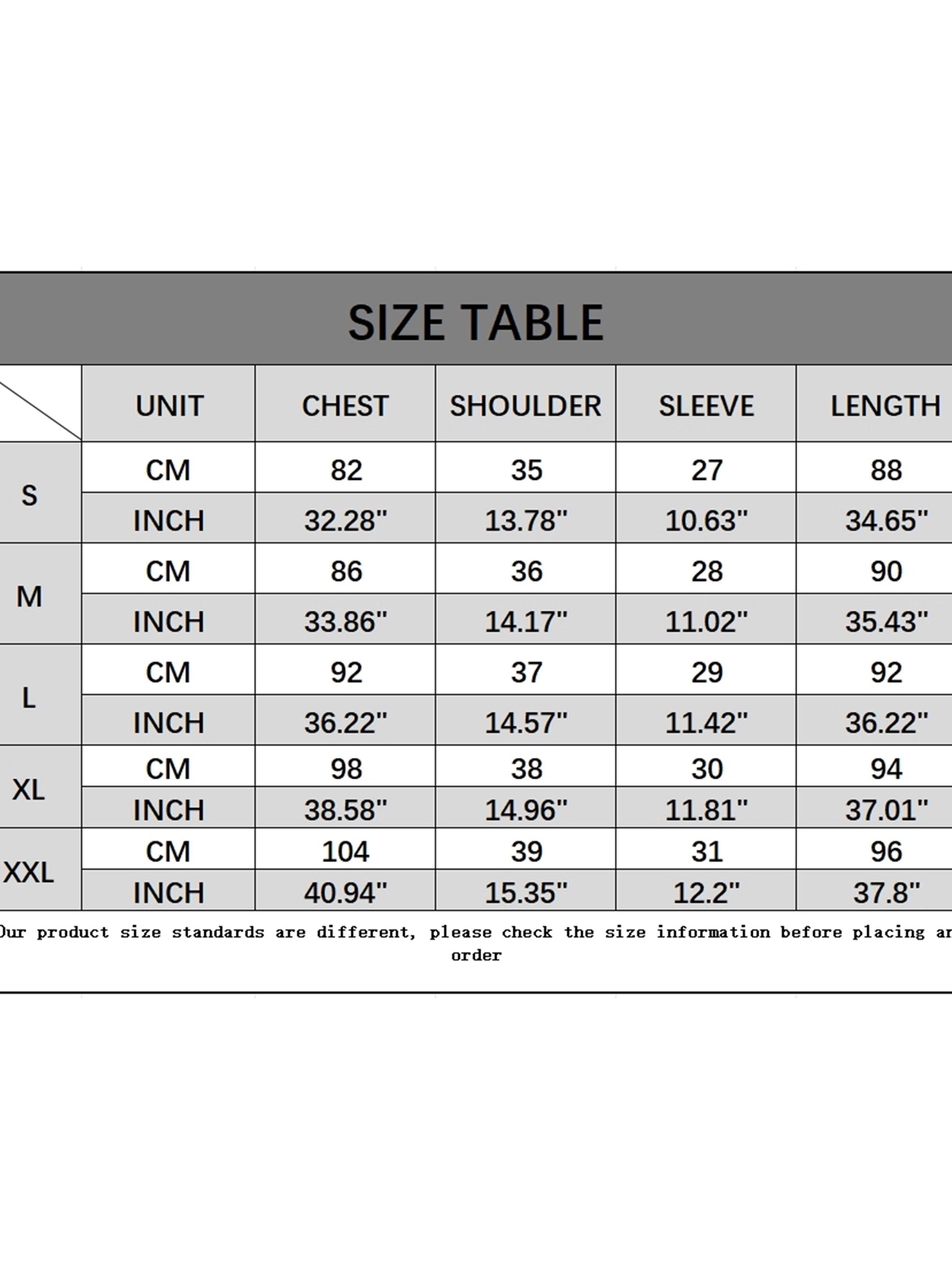 Sizes: S, M, L, XL, XXL