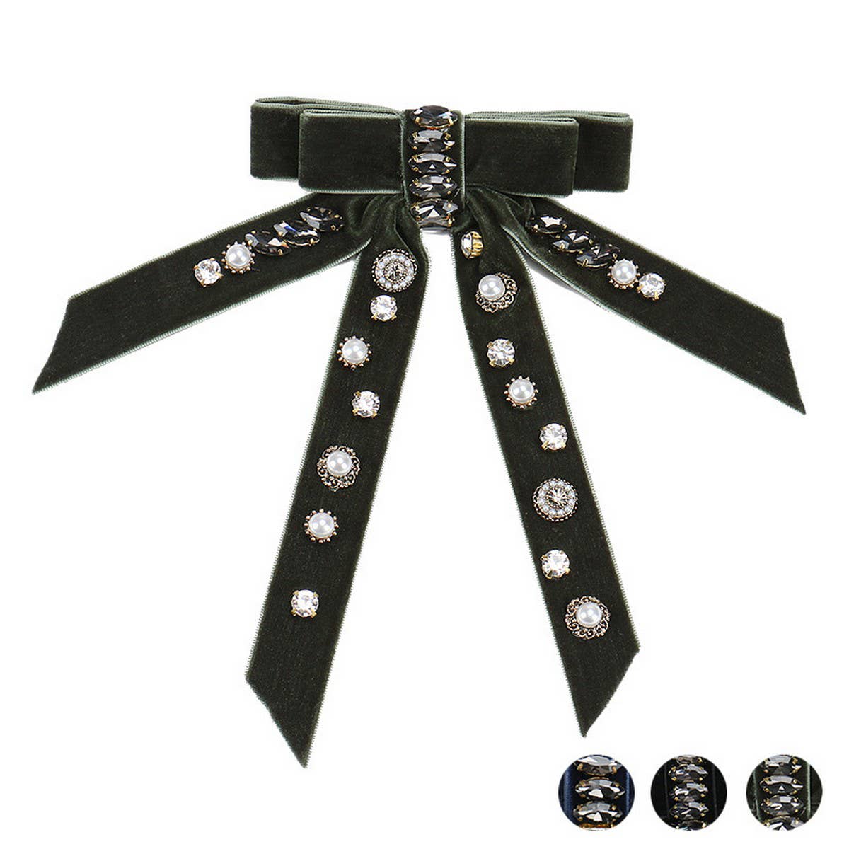 VELVET BOW PERSONALIZED DIAMOND PEARL HAIRPIN