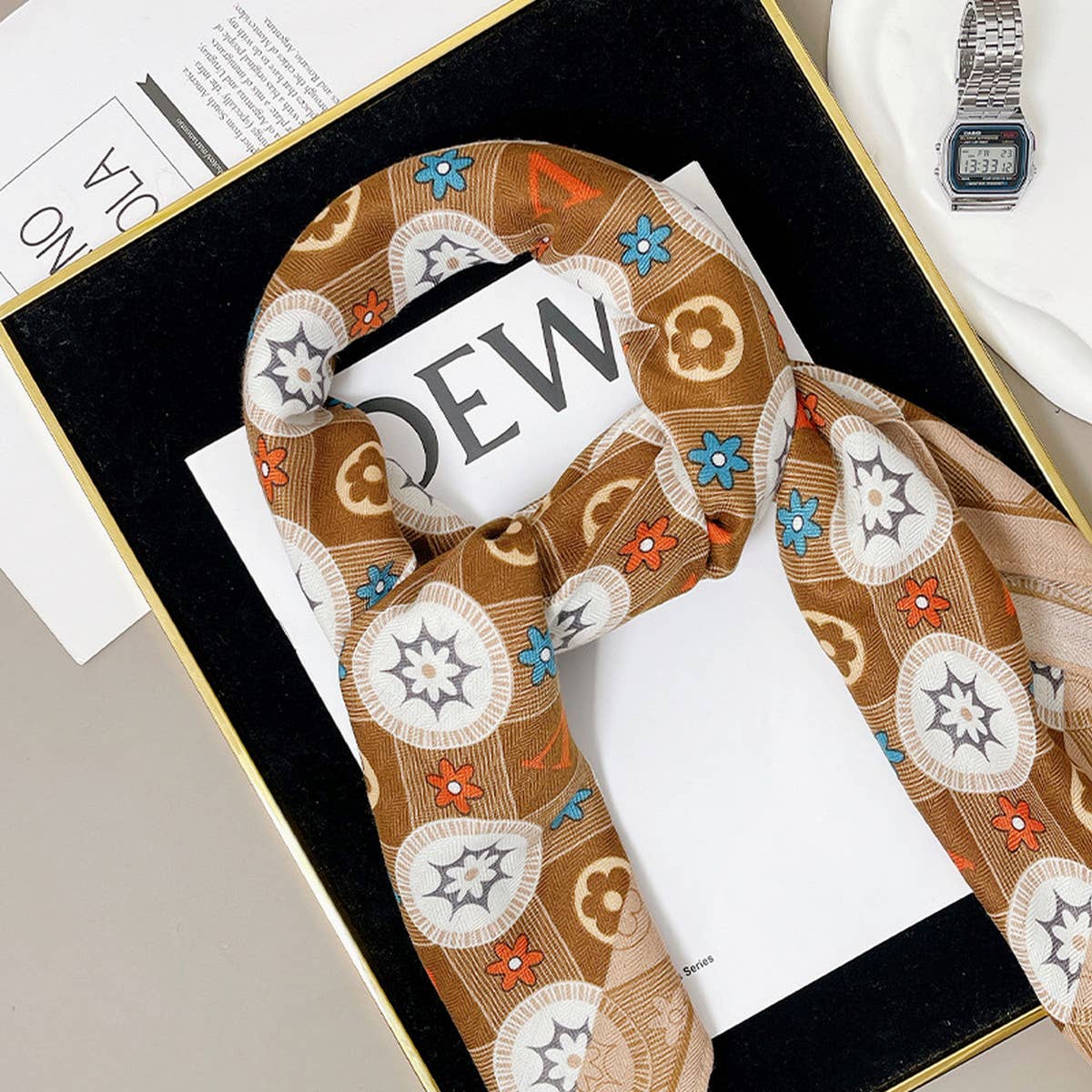 ? Product Name: Luxury Square Scarf\n? Material: 100% Polyester (Velvet)\n? Weave Type: Plain Weave\n? Size: 90×90cm (35.4×35.4 inches)\n? Weight: 150g (5.3 oz)\n\n???☆☆ Above average: decent quality for everyday use .\n\nTypes Of Products That Will Be On The Shelves During This Period:\nSilk scarf, Square scarf, Fashion scarf, Neck scarf, Hair scarf, Head scarf, Twilly scarf, Printed silk scarf, Horse print scarf, Vintage scarf, Satin scarf, Bandana scarf, Scarf for bag handle, Decorative scarf, French style scarf, Elegant neck scarf, Small silk scarf, Thin silk scarf, Boho scarf, Retro scarf, Striped silk scarf, Animal print scarf, Scarf for women, Scarf for hair, Scarf with border, Colorful silk scarf, Scarf for travel, Lightweight scarf.