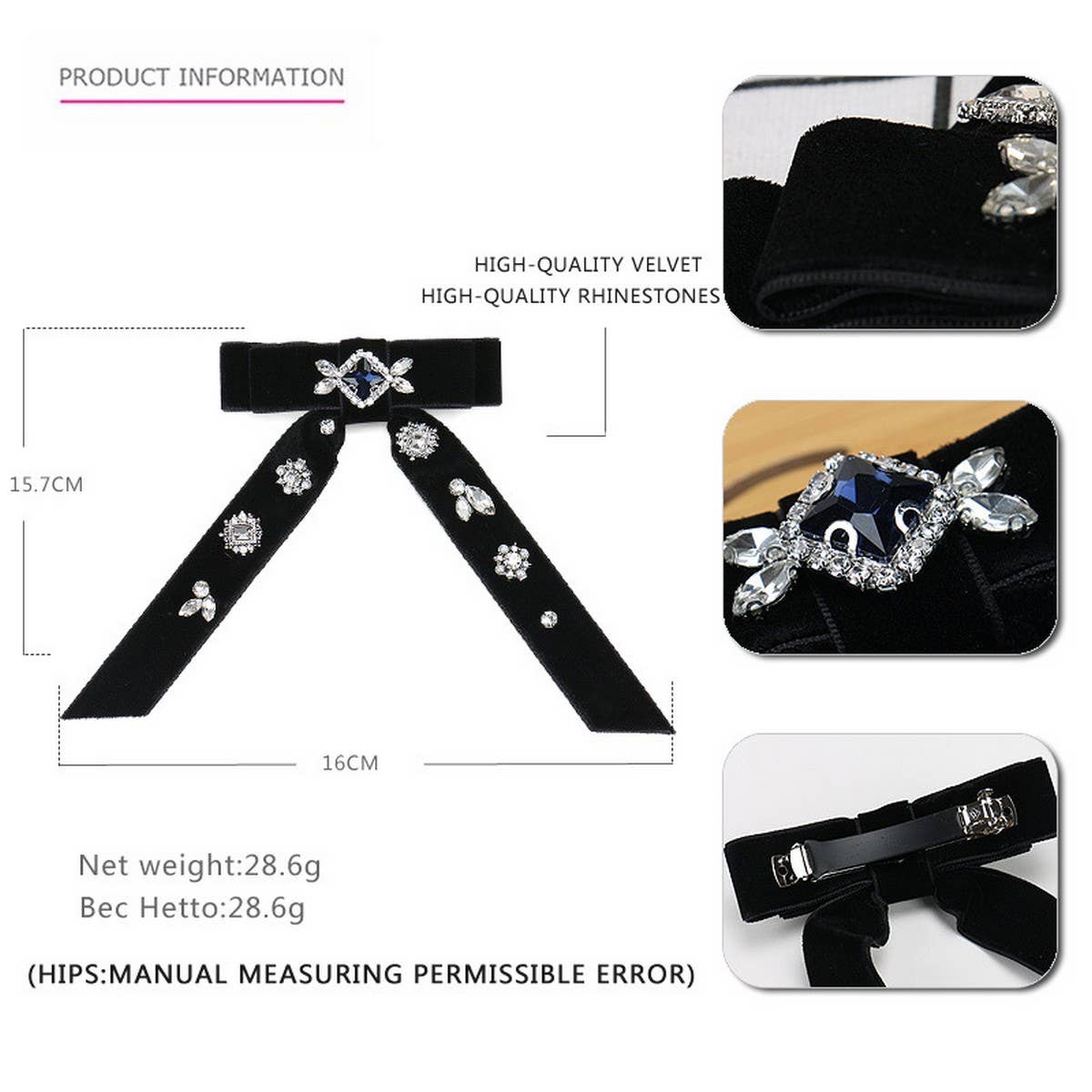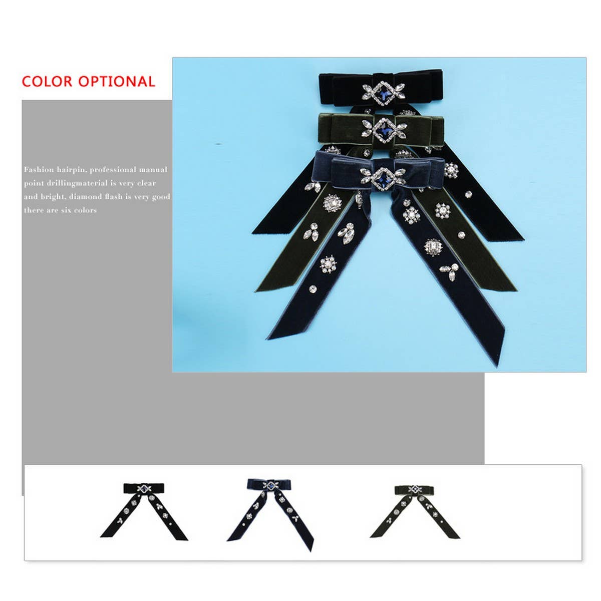 VINTAGE CRYSTAL HAIRPIN VELVET BOW HAIR ACCESSORY