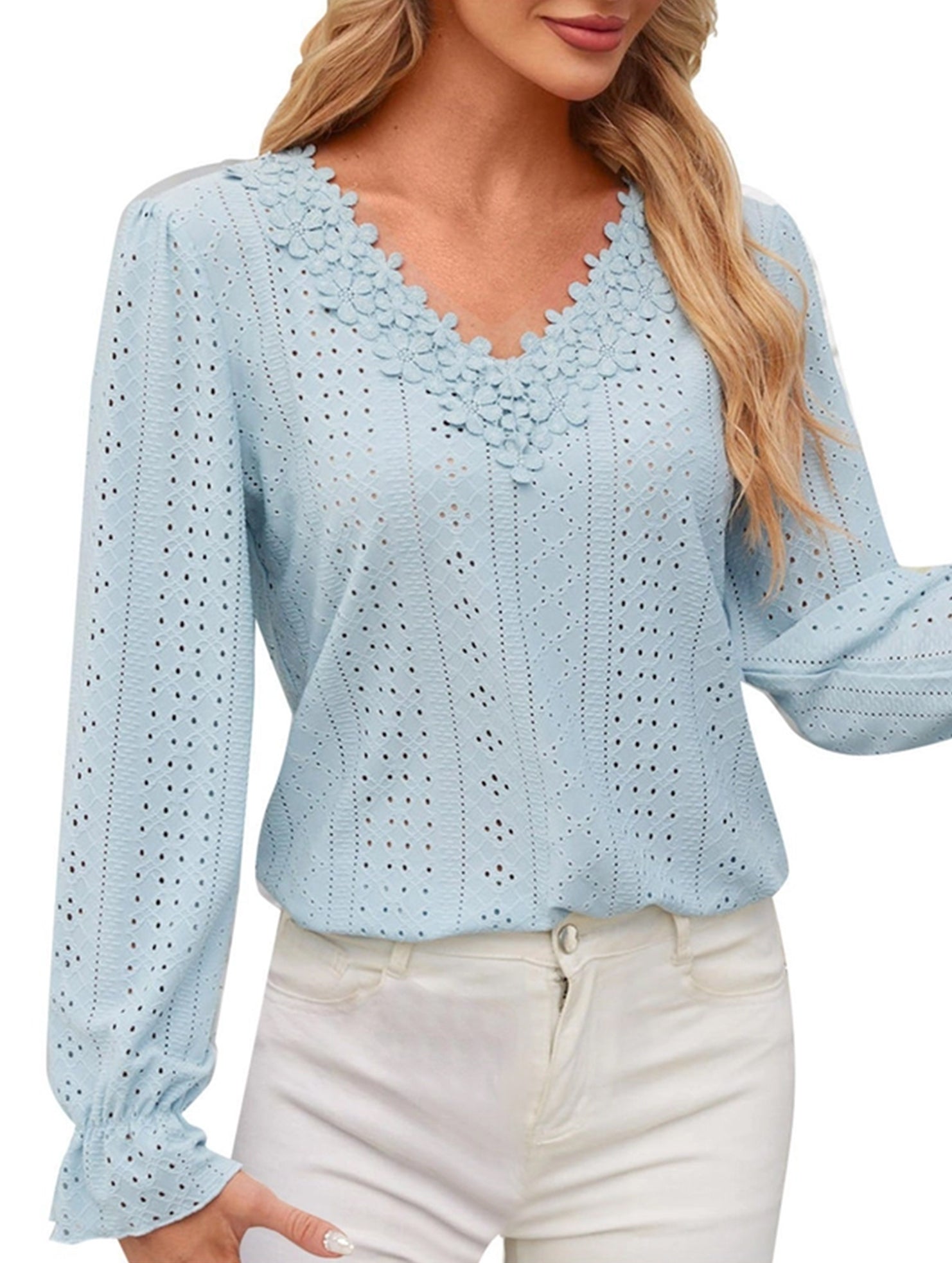Vintage Hollow Crochet V-Neck Long Sleeve Shirt