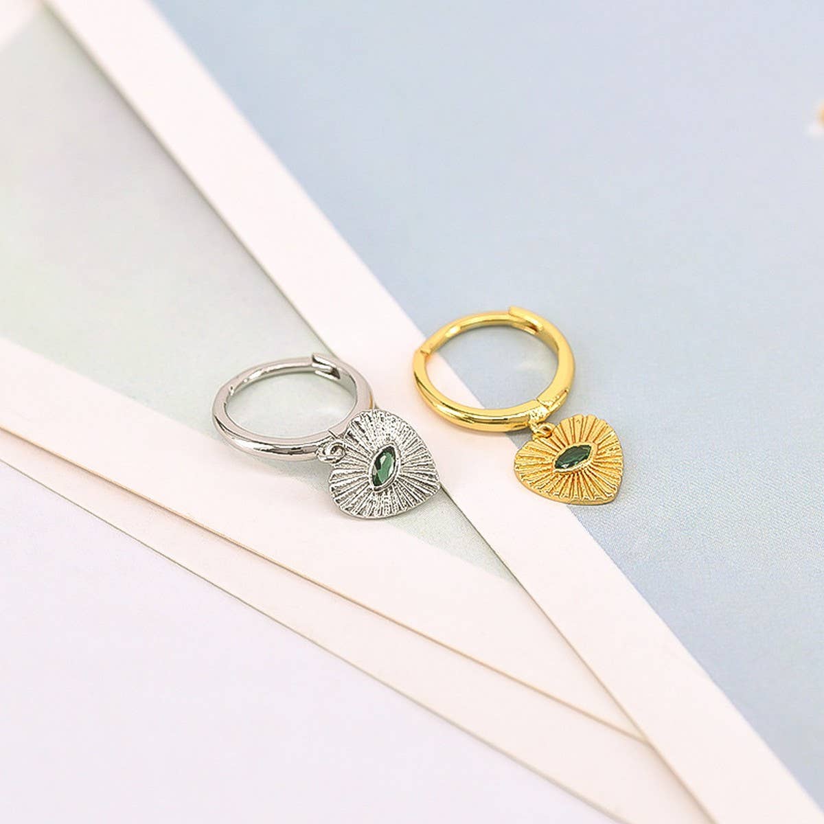 VINTAGE LOVE GREEN EVIL EYE HEART EARRINGS