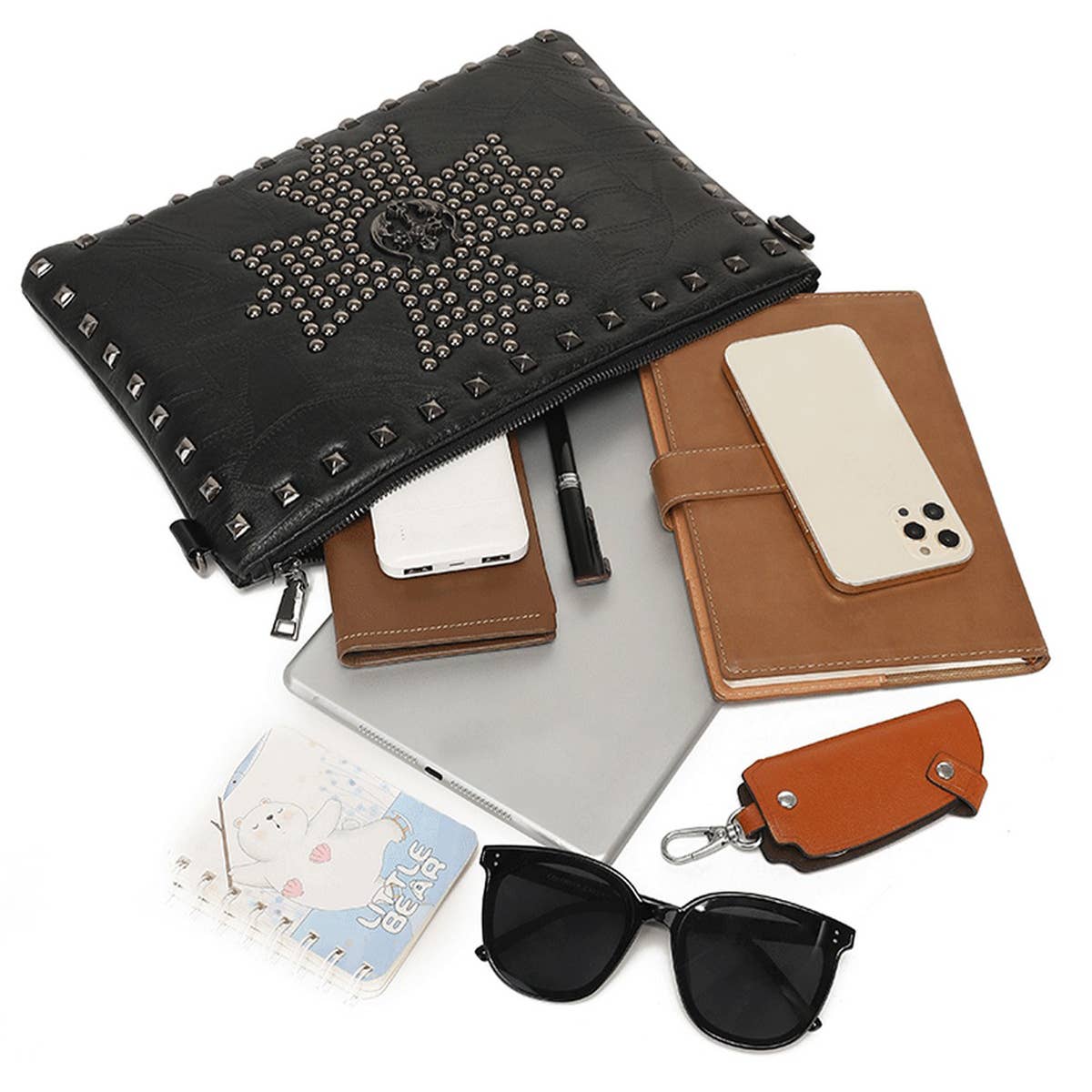 VINTAGE RIVET LARGE CAPACITY FILE PACK HANDBAG\nSIZE:OS(1)\n100% PU\nMADE IN CHINA\n\nWESTERN WRISTLET BAG,COMPACT WRISTLET BAG,EVERYDAY ESSENTIALS WRISTLET BAG,STYLISH COTTON WRISTLET BAG,CROSS STITCHED WRISTLET BAG,SPRING WRISTLET BAG,LEATHER WRISTLET BAG,DURABLE WRISTLET BAG,HIGH SELL THROUGH WRISTLET BAG,TOP SHOP WRISTLET BAG,SPRING SUMMER WRISTLET BAG,AUTUMN WINTER WRISTLET BAG,TOTE BAGS,TOTE BAGS CANVAS,TOTE BAGS CANVAS BLANK,TOTE BAGS CUSTOMIZABLE,TOTE BAGS LEATHER,TOTE BAG PURSE,TOTE BAG CHRISTMAS,SPRING AND SUMMER TOTE BAG,SPRING AND SUMMER TOTE BAG,AUTUMN AND WINTER TOTE BAG,HIGH SELL THROUGH TOTE BAG,TOP SHOP TOTE BAG,SHOULDER BAG STRAP,SHOULDER BAGS,SHOULDER BAG WITH CHAIN,SHOULDER BAG WITH POCKETS,SHOULDER BAG WITH BARE SHOULDER BLACK,SHOULDER BAG WITH WHEELS,SHOULDER BAG WITH SEQUINS,SHOULDER BAG BUCKET,BOHEMIAN,BOHO,BEST SELLING,TRENDING,NEW PRODUCTS,HOT SELLING,TOP SHOP,HIGH SELL THROUGH,BEST PRICE,CLEARANCE,FASHION,FLASH SALE,GOOD QUALITY,MARKDOWN SALE,RECOMMEND
