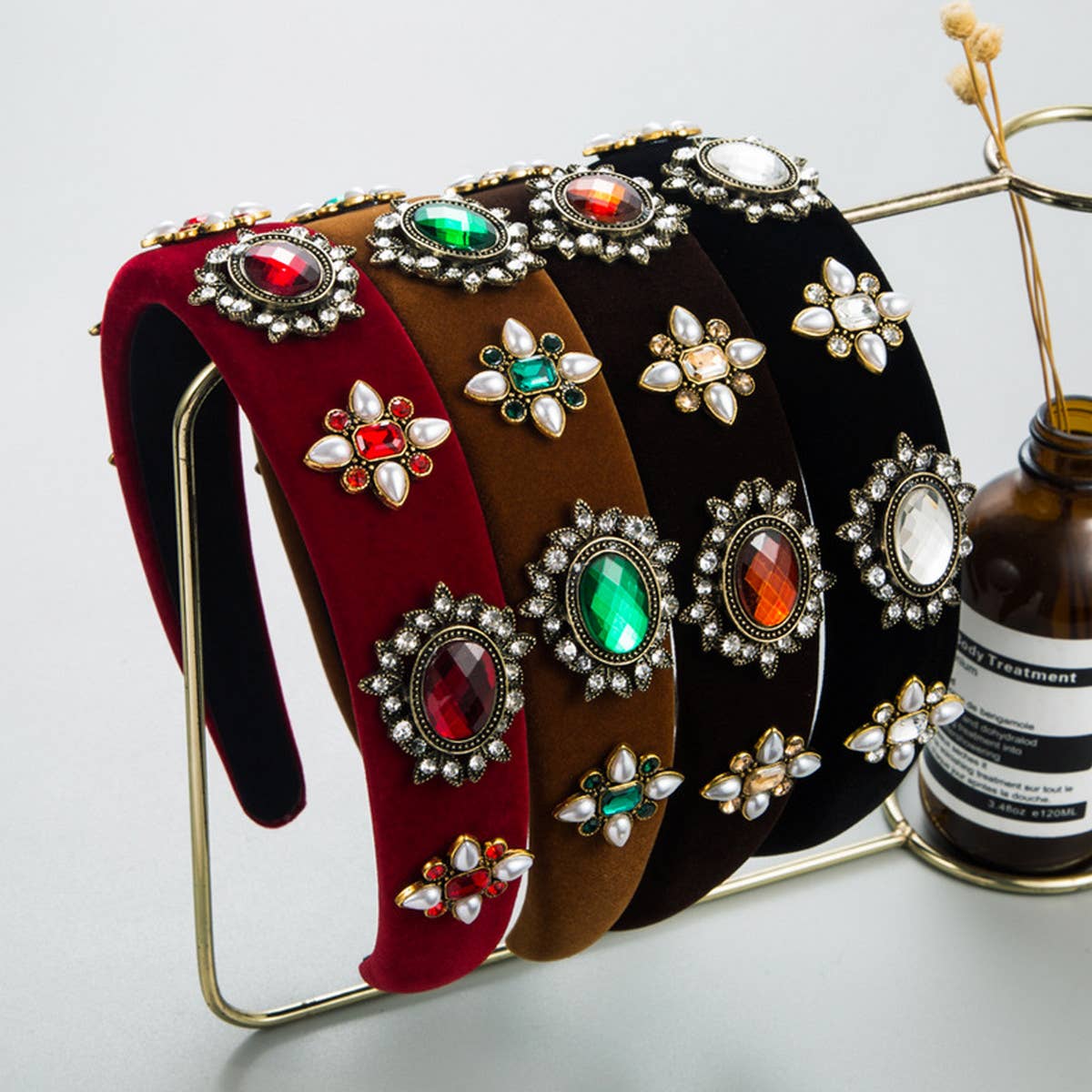 VINTAGE VELVET DIAMOND PEARL FLOWER HEADBAND