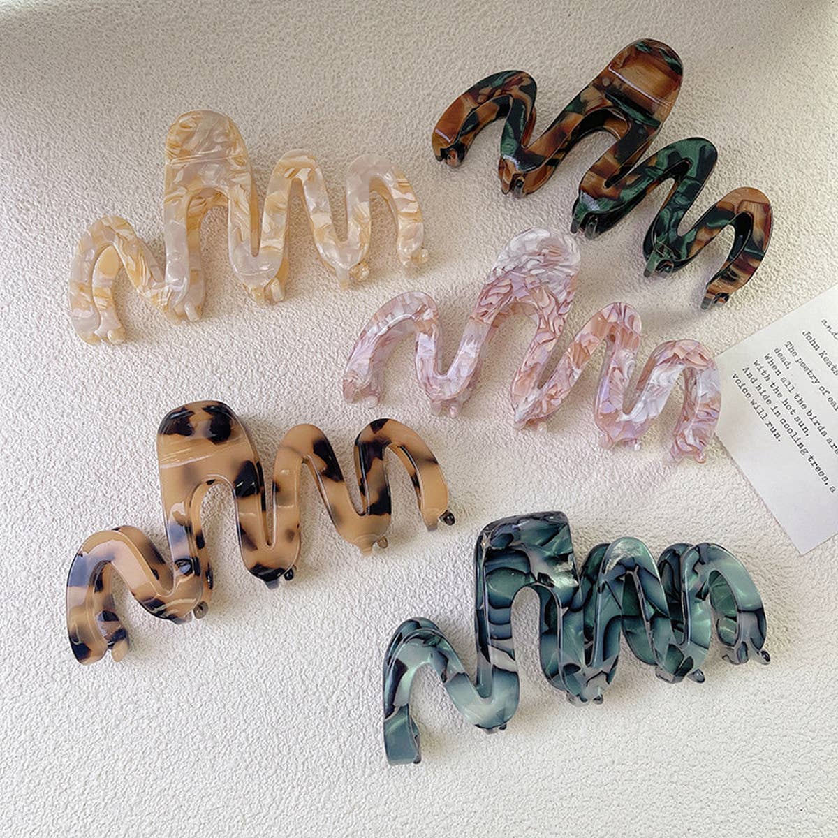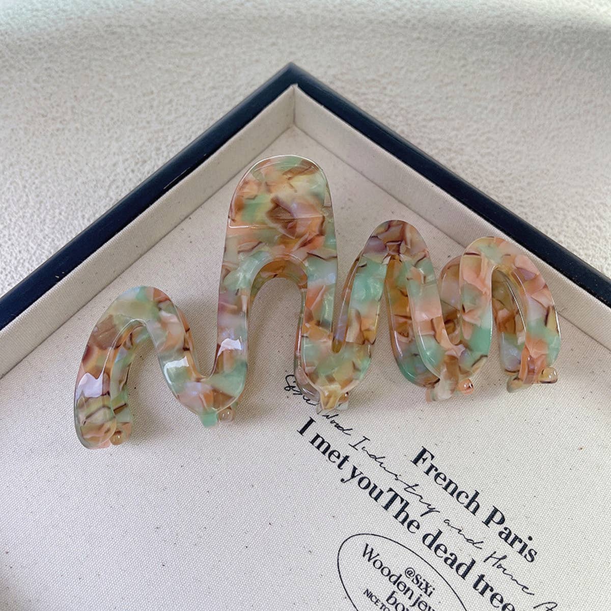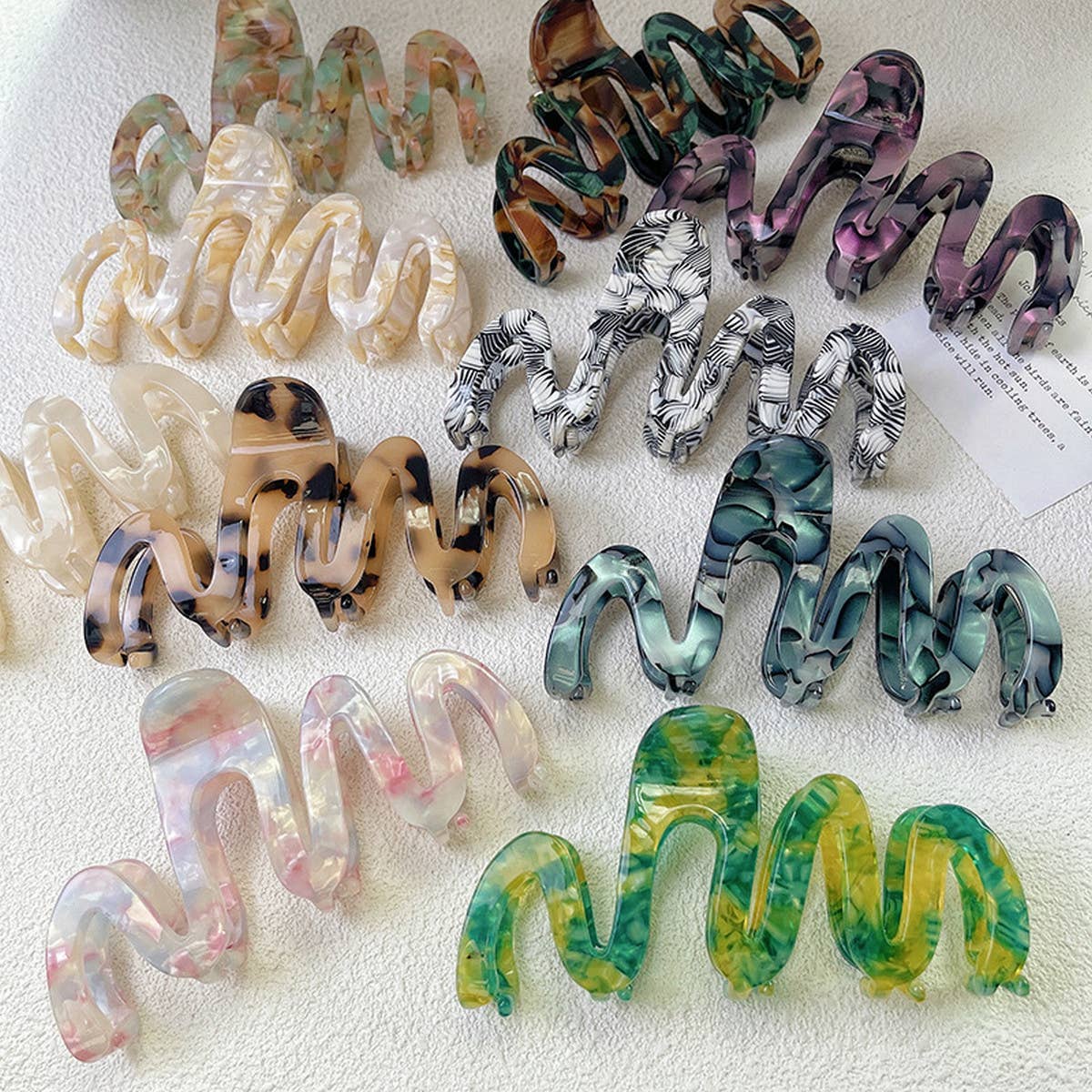 ? Size: 12 ¡¿ 5.5cm / 4.72 ¡¿ 2.17in\n? Material: Acetate\n? Design Elements: Elegant wave silhouette ~~\n? Style: Artistic and refined ? the wavy shape adds movement and sophistication, perfect for both everyday chic and polished updos.\n\n#wavehairclip #acetatehairclip #sculpturalhairclip#12cmhairclip #modernhairaccessory #fluiddesign#eleganthairclip #wavyclip #minimaliststyle\nTypes of products that will be on the shelves during this period:\nHair claw clip set, large hair claw clip, flower hair claw, boho claw clip, pearl hair claw, modern hair claw, rhinestone claw clip, colorful hair claw, hair clips claw, hair clips for women, wholesale hair clips, bulk hair clips, hair clip display, clips for hats, clips for kids, mini hair clips, trendy hair clips, fashion hair claws, strong hold hair clip, acrylic claw clip.