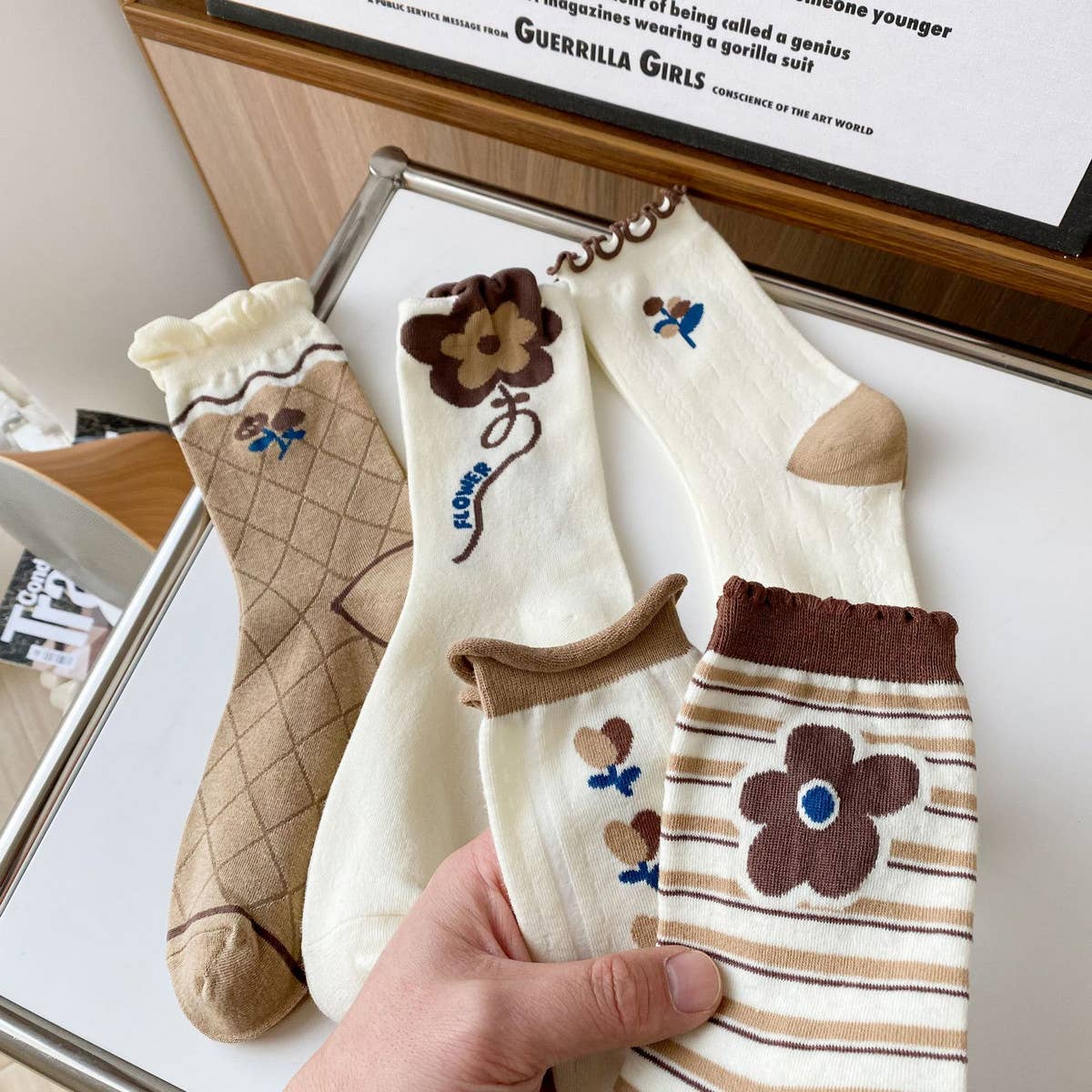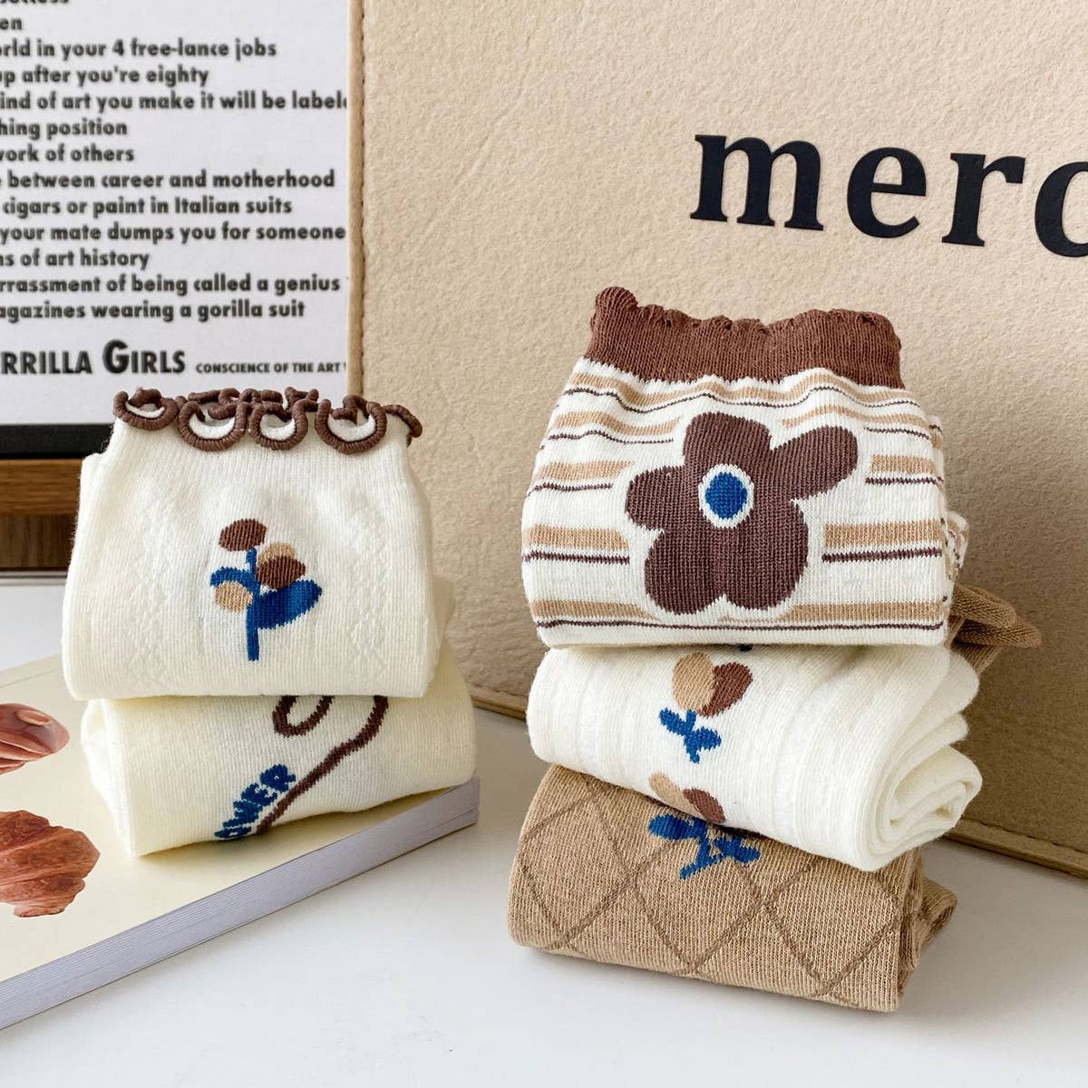 *Pattern: Plants and flowers\n*Packaging: OPP\n*Applicable gender: Female\n*Main fabric composition: Cotton\n*Tube height: Middle tube socks\n*Needle count: 200N\n*Suitable season: Spring, Summer, Autumn, Winter\n*Color: White and brown flowers, lace, brown, striped flowers, a row of flowers\n*Main fabric composition content: 50% (inclusive) -70% (exclusive)\n*Weaving method: Single needle\nMADE IN CHINA\n\nTypes of products that will be on the shelves during this period:\nSocks for women,Socks novelty,Socks mith,Socks for men,Socks for kids,Socks funny,Socks cozy,Socks in a box,Socks for women bamboo,Socks for women cozy,Socks for women ruffle\nCozy socks for women,Cashmere socks for women,Fuzzy socks for women,Boot socks for women,Winter socks for women,Knee high socks for women,Crew socks,White crew socks,Mens crew socks,Embroidered crew socks,Custom crew socks,Organic cotton crew socks,Cotton crew socks,Blank crew socks,Boys crew socks,Retro crew socks.