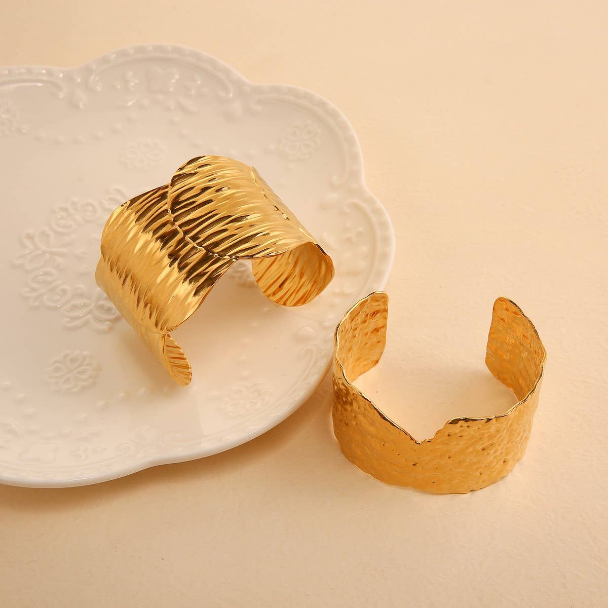 Wide Irregular Open Cuff in 18K Stainless Steel