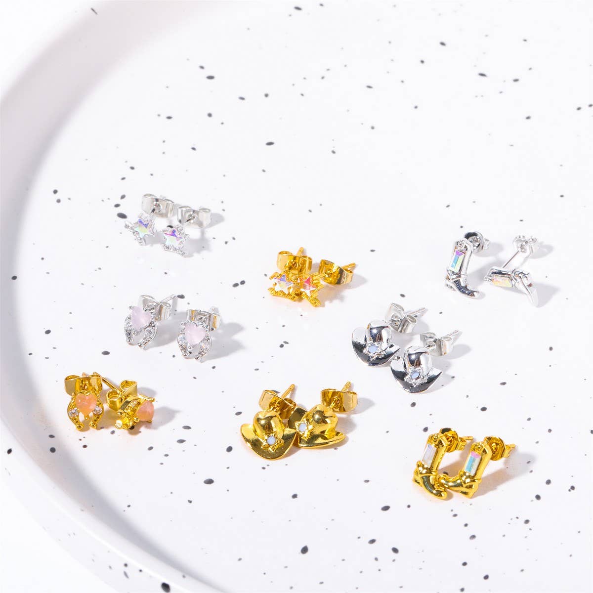 Women??¢s Cowboy Boots Hat Horseshoe Stud Earrings_CWAJE5075