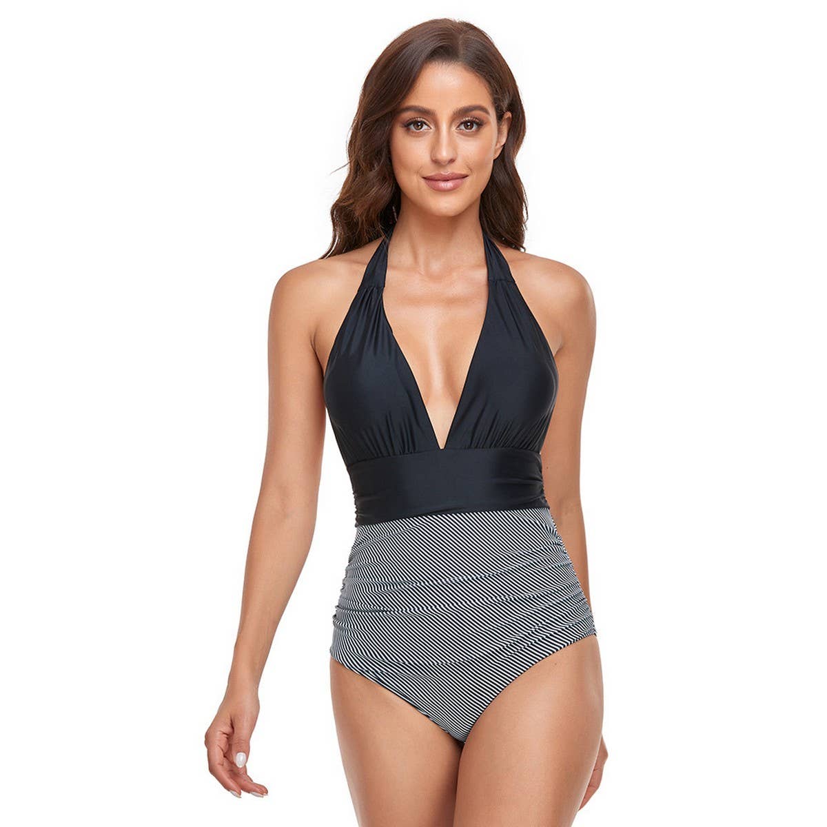 WOMEN'S HALTER BACKLESS ONE-PIECE SWIMSUIT
