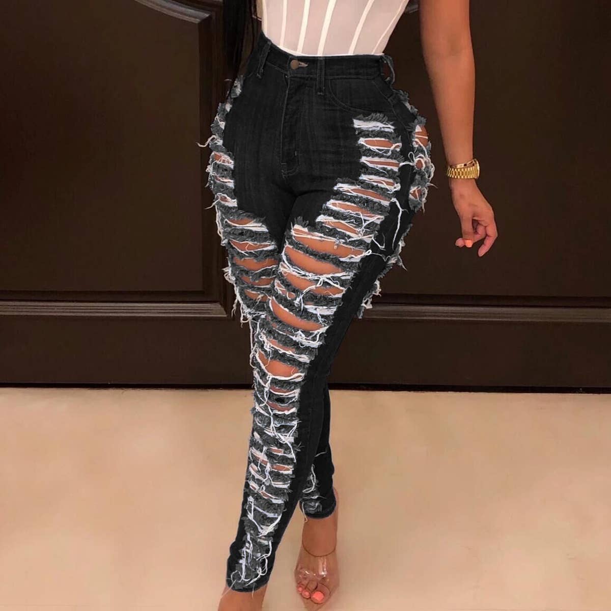 WOMENS SEXY HOLE TASSEL SLIM FITTING JEANS