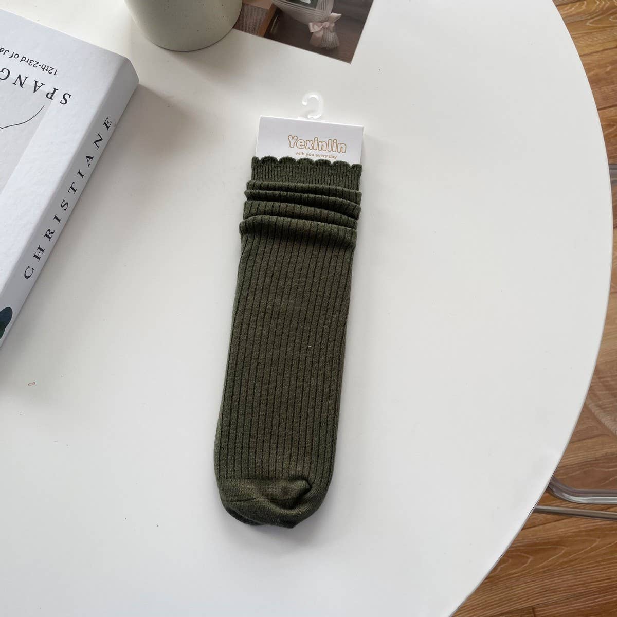 WOMEN'S SOLID COLOR CASHMERE LACE MID-CALF SOCKS\nSIZE: OS (1) \n100% COTTON \n MADE IN CHINA\n\n\nWOMEN'S SOCKS, CASUAL ANKLE SOCKS, COTTON PLEATED SOCKS, THIN SOFT COMFORTABLE BREATHABLE SOCKS, SOFT COTTON SOCKS, SIMPLE SOCKS, SOLID COLOR SOCKS, BASEBALL SOCKS, WINTER SOCKS, CRAZY SOCKS, DRESS SOCKS, GOLF SOCKS, TUBE SOCKS, WOMEN'S SOCKS, BUN SOCKS, PATTERNED SOCKS, COLORED SOCKS, CALF SOCKS, WOMEN'S NOVELTY SOCKS, STOCKINGS, FOOTBALL SOCKS, BAMBOO SOCKS, SPORTS SOCKS.LEG SOCKS, CARTOON SOCKS, KNEE SOCKS, WARM SOCKS, COMPRESSION SOCKS£¬ROLLER SKATING SOCKS, WOMEN'S WOOL SOCKS, WOOL SOCKS, PERSONALIZED SOCKS, WORK SOCKS, PATTERNED SOCKS, COLORED SOCKS, NOVEL SOCKS, TIE DYED SOCKS£¬WOMEN'S CREW SOCKS, WOMEN'S CALF SOCKS, HUNTING SOCKS AND BEER SOCKS.HOME PADDED CORAL VELVET COTTON SOCKS£¬PADDED CORAL FLEECE CAT CLAW SOCKS£¬WOMEN SOLID COLOR PILE SOCKS COTTON SOCKS£¬WOMEN VELVET PADDED WARM SOCKS