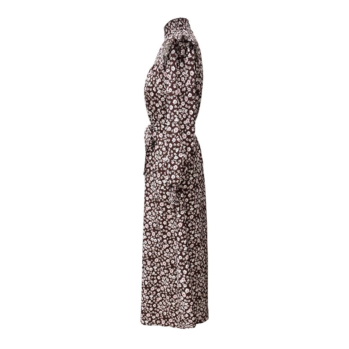 - Design: Floral print, belted waist, wooden ear sleeve details, flowy silhouette