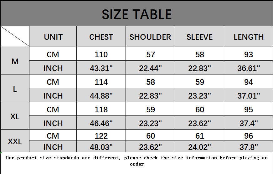 - Sizes: M, L, XL, XXL